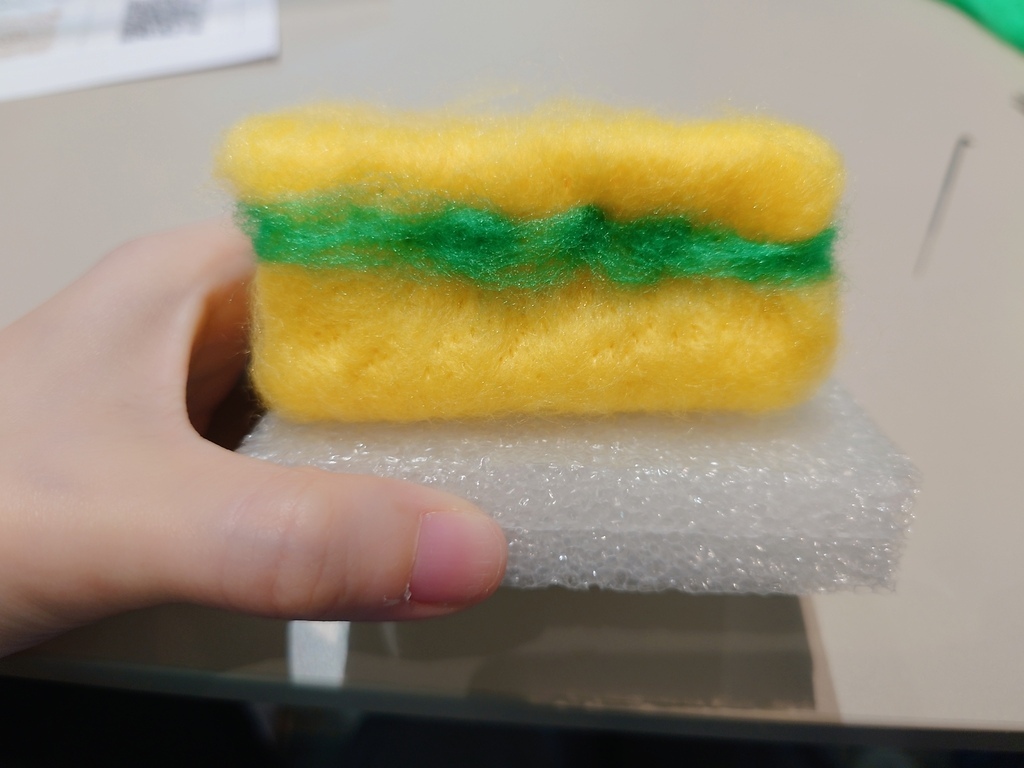 羊毛氈菜瓜布手作課程,非常適合家長教導小孩回去創作試看看做出屬於自己的可愛菜瓜布,因為時間有限,照片中還是半成品的菜瓜布,必須用針把羊毛氈變緊實縮小才算完成品。