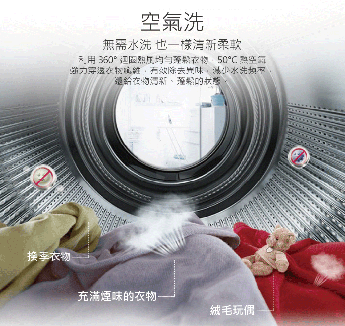 請問海爾12公斤3D蒸氣洗脫烘滾筒洗衣機(HWD120-198GR),裏面有一個『空氣洗』的功能,看說明是如附圖雖說看說明是用來去除異味,不知道是否也可拿來當成烘衣用(因為說明寫的是50度熱風)比原本內建的烘乾60度還要低,請問有人有用過這功能來烘乾衣服嗎?效果如何?
