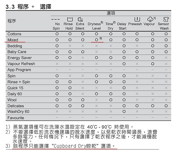 按照說明書在Mixed洗衣模式下是不可能選到Extra Dry全乾模式.