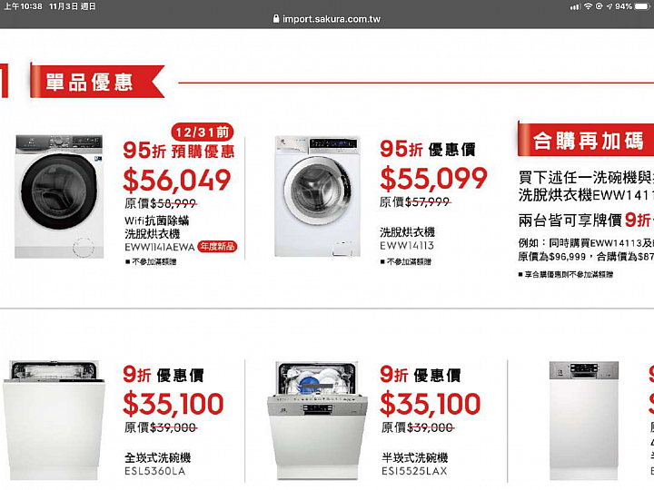 simonchai wrote:請問洗衣量(kg)跟...(恕刪) 洗衣量大多都在2~3公斤,我不會一次塞滿,最多就4公斤,還沒洗完的就下一批(麻煩了點,但我覺得還可以接受)水溫都是40度(大多的衣物跟寢具都是40~60度,所以我都是用40度)流程是 開機 > 按行程 > 調整水溫> 放衣物(此時才能正常顯示你放入的衣物總重量,不然你得把衣服拿起來再放進入才能偵測重量)>關閉機器艙門(此時會顯示需倒入的洗劑,但參考就好,2~3公斤通常會叫你放約60%的洗劑,但都太多了)>倒入洗劑 > 啟動至於洗劑量,可以參考我上一樓建議的自從熟悉了滾筒,會發現變得很喜歡洗衣服...回不去直筒了..