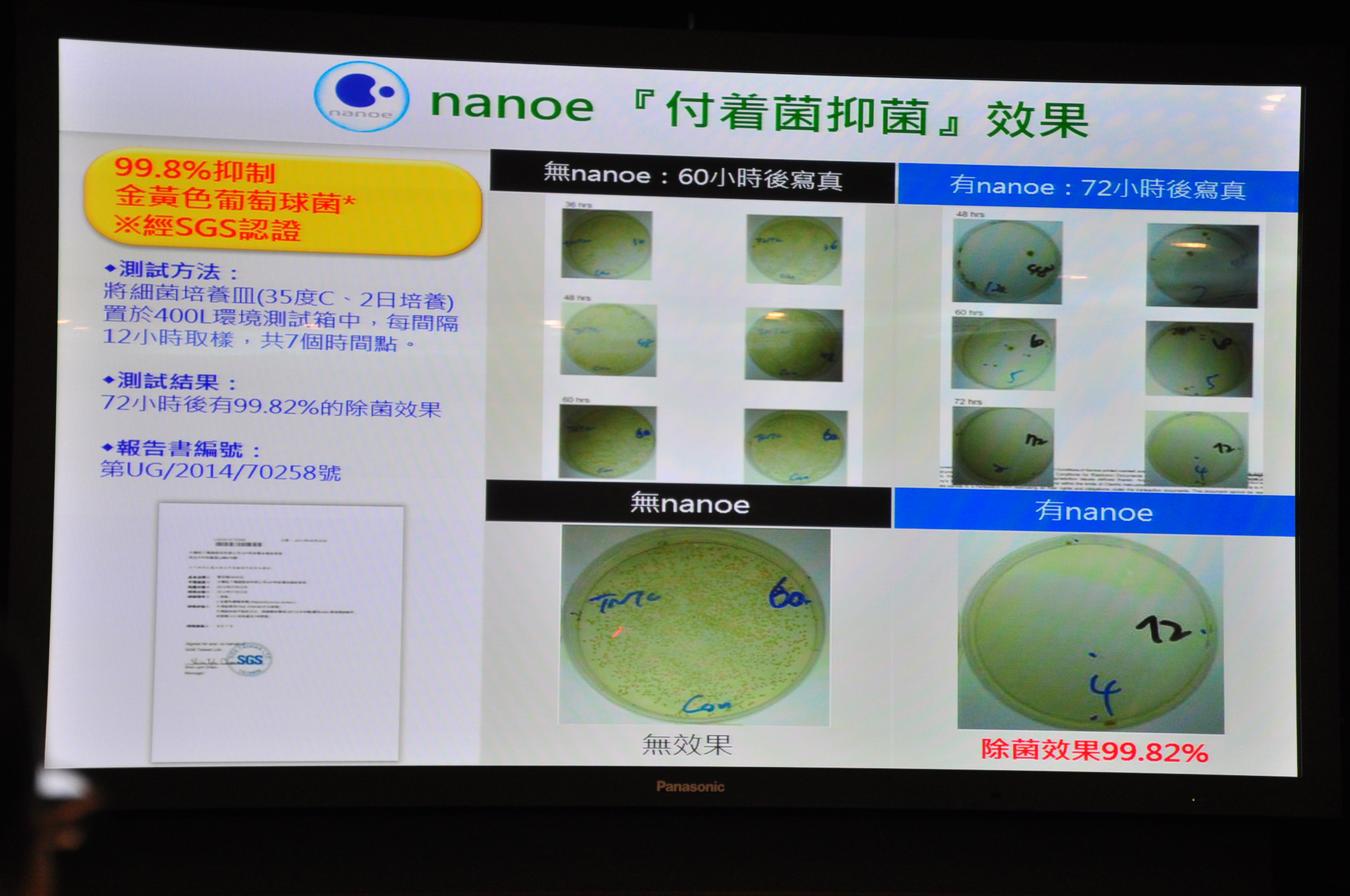 ▼nanoe的抑菌效果有經過SGS認証.達99.82%,快100%,真強..