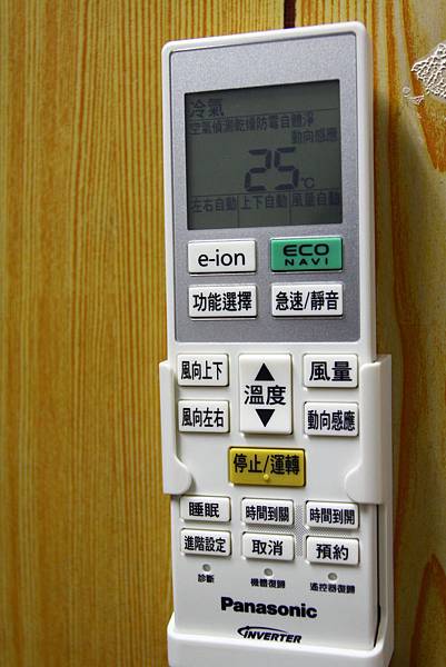 用習慣另一家H品牌的冷氣遙控器,深深覺得Panasonic ECO NAVI 這也太多按鈕了吧~~~  一整個都不知道該怎麼按下去!! 一看就是以功能性取勝,這又讓我想起那簡潔的H牌遙控器,比較好奇的部分是遙控器上面 有診斷 機體復歸 遙控器復歸的選項!! 不過 可以自行處理嗎? 還是要透過專業之手呢??