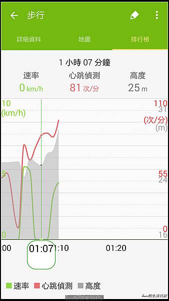 記錄完之後還有各項數據 , 如運動時間 , 距離 , 卡路里 , 心跳及速率