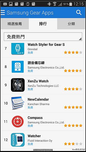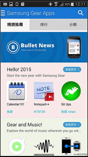我之前有提到 , Gear S並不是一開機就可以使用 , 比較美中不足的是還要先跟有支援的三星手機(最好是最近兩年的機種)下載完Gear MANAGER才能進行配對使用..