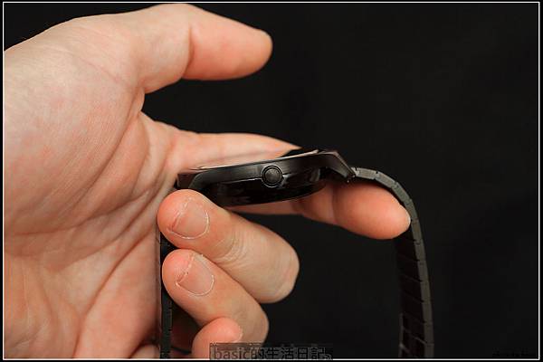 錶身側面只有一顆按鈕 , 相當的簡捷..