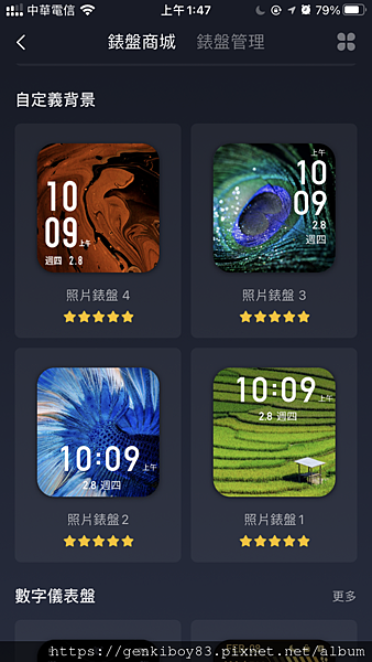 內建大概有將近 50 個錶盤,可以同步幾個存到手錶內替換