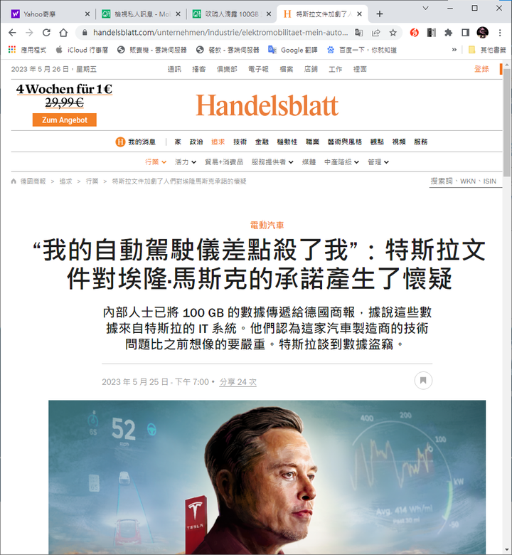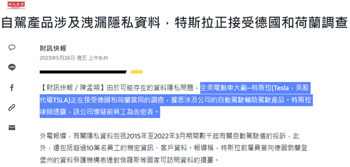 幾個小時前的新聞,大致上是一位特斯拉內部的舉報人向德國《商報》洩露了 100GB 資料。