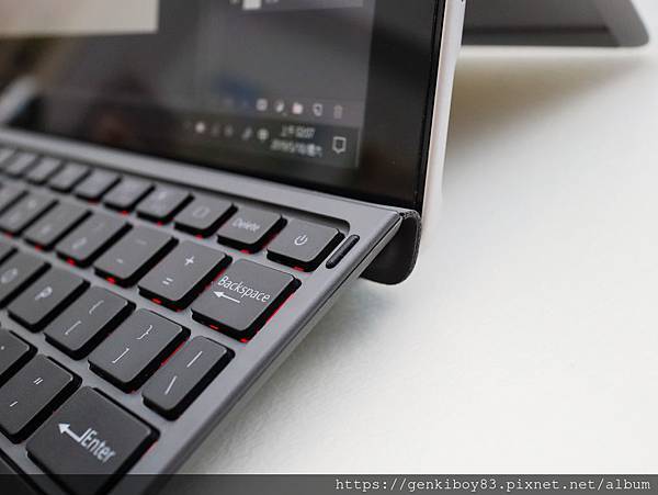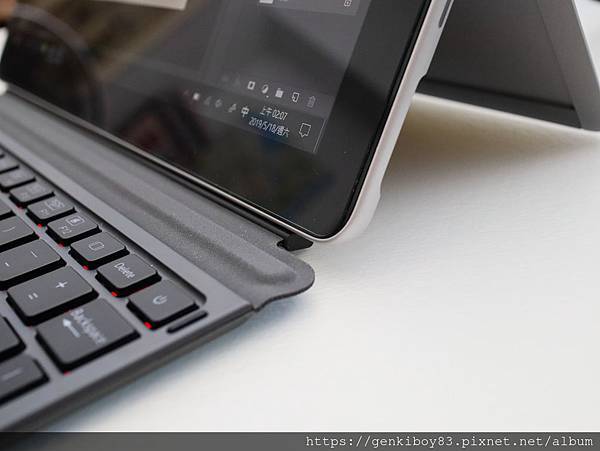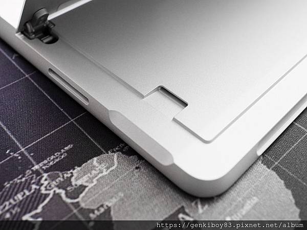 原廠的鍵盤與Surface是靠磁吸的方式與金屬接點送出訊號,因為這個鍵盤是無線藍芽,所以少了金屬接點的設計