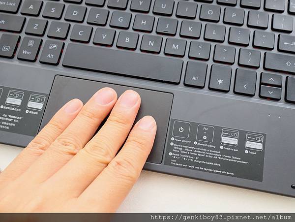 藍芽鍵盤背面也有一點植絨的效果,但跟原廠的質感相比差距是滿大的
