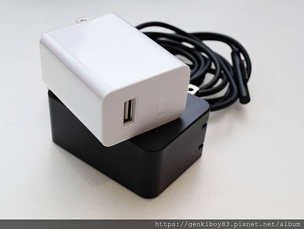 Surface GO的充電器上沒有USB的設計,不過插頭的接腳是可以摺疊的,整體的大小大概跟手機的充電器差不多大而已,攜帶上還算方便