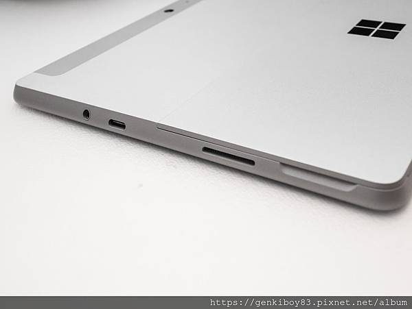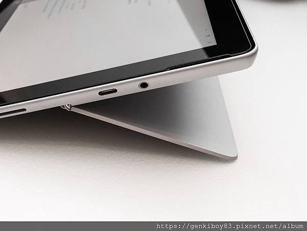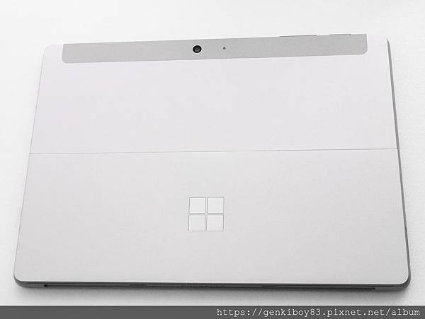 上方後面這片是以塑膠材質為主,應該是機器的天線都設計在這區,為了防止金屬屏蔽效應阻擋無線訊號,因為Surface GO採用的是低功耗CPU,所以沒有像Surface Pro系列一樣散熱孔的設計,好處是不怕灰塵掉進機器裡。