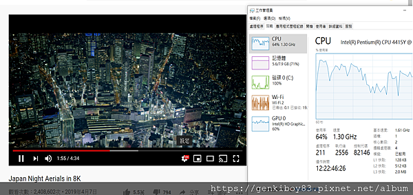 因為不是要當主力機種使用,所以效能上只要能滿足一般行動辦公使用即可,直接用chrome跑個8K影片也還是挺輕鬆的,CPU還沒滿檔,基本使用效能上應該是沒有什麼大問題