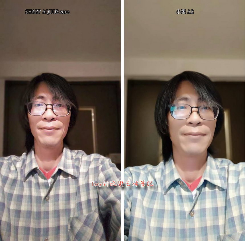 至於前鏡頭,【SHARP AQUOS Zero】僅僅只廣了一點點而已,但顏色似乎會調整至較討喜的洋紅色調。看來前鏡頭調校還是有以人像自拍去做校色設定。