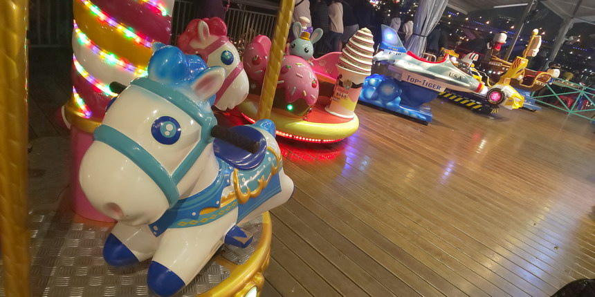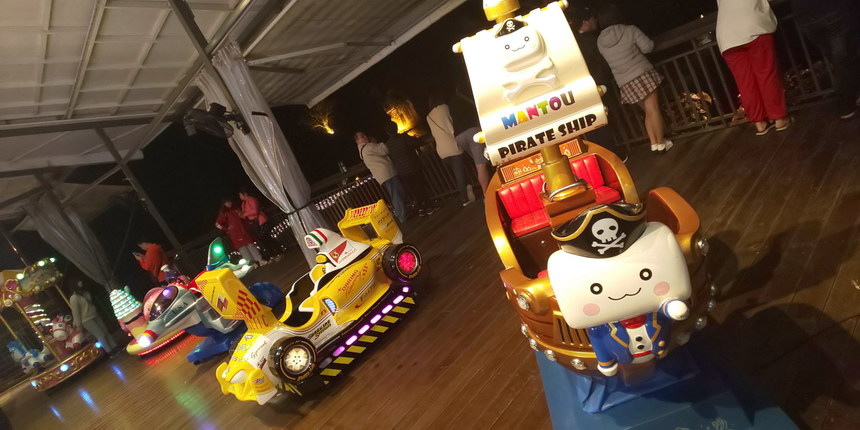 逆光下的遊樂園,特別挑一個色彩多一點的地方來做比較,可以看出【SHARP AQUOS Zero】在對比與色彩上的處理,確實有一套。HDR處理的算是最剛好,細節放大都還滿清楚的。