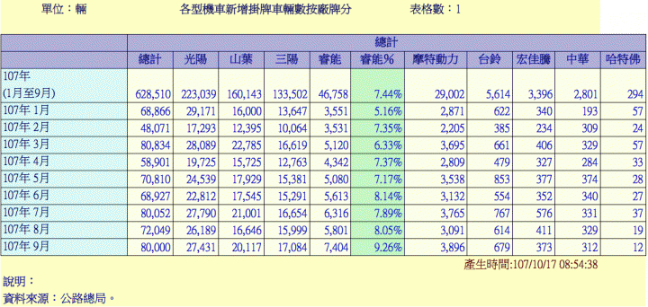 arno162000 wrote:這樣看來 三陽還真猛幾乎沒有下降 沒錯,下降幾乎來自其他廠可能跟三陽最近才有出新引擎的車和一些全新車型有關光陽是下降最多的,去年同期本來有接近4成7的市佔,現在只剩下3成六如果是算125CC部分的話,8月還下滑到第三名,9月回到第一(跟其他兩大廠幾乎沒差距)