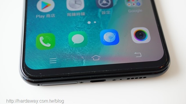 vivo X21機身右側,配置音量鍵與電源鍵,左側則沒有任何按鍵。而從這個角度看,就能感受7.37mm厚度的vivo X21真的蠻薄的。