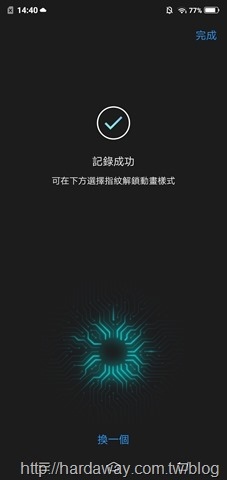 完成指紋記錄後,以後就能透過螢幕指紋解鎖功能進行手機解鎖,或是隱私與應用程式加密。