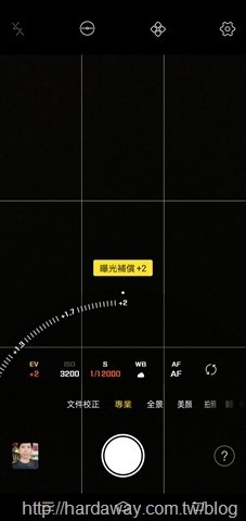vivo X21的專業模式,EV值可調整範圍從-2到+2。