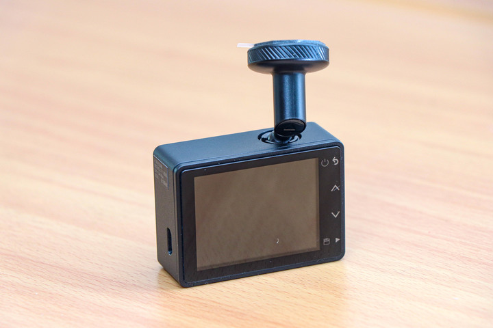 47及67W背面都配置2吋螢幕,為非觸控式,要靠右邊側面的四顆實體按鍵進行操作;左側則設有microUSB插孔,記憶卡插槽設置在機身底部,購買時已隨機附上一張16GB的microSD記憶卡在內,主機本身支援8GB~128GB Class10以上規格的microSD記憶卡。就實測經驗,47以最高1080p錄製1分鐘的影片,檔案大小約為123MB;最高可錄製1440p影片的67W,1分鐘檔案大小約164MB。建議若長時間出門在外,不想讓影片太快被覆蓋掉,最好自行更換容量更大的記憶卡。