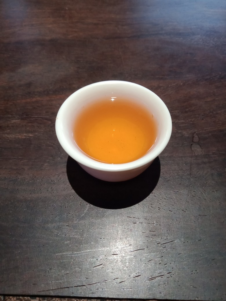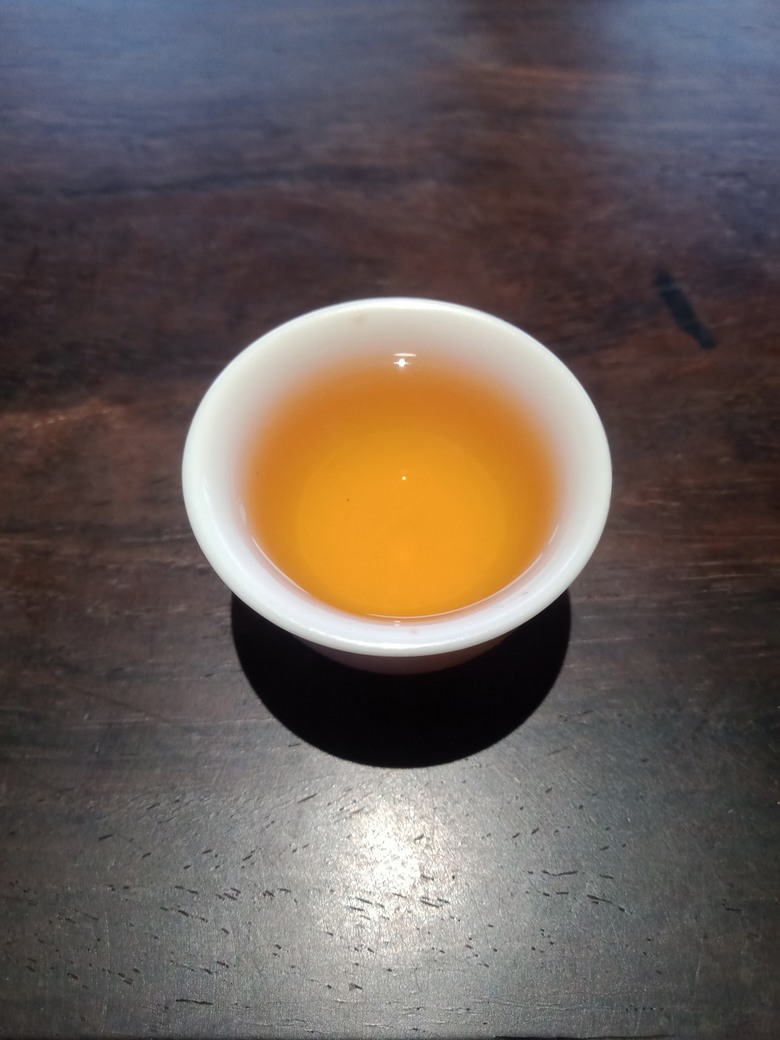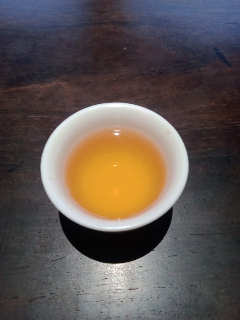 約2000年左右武夷,火味略偏重了一點,算是勉強可以接受,質感有中等略好,比上面那兩支要舒適