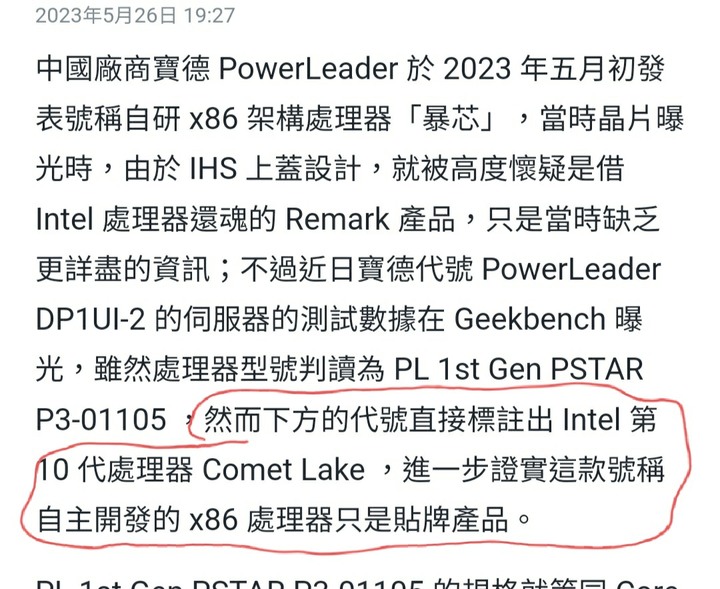 大陸國產CPU效能雖然落後intel最新產品但是自身可以滿足平日文書處理工作需求,是事實