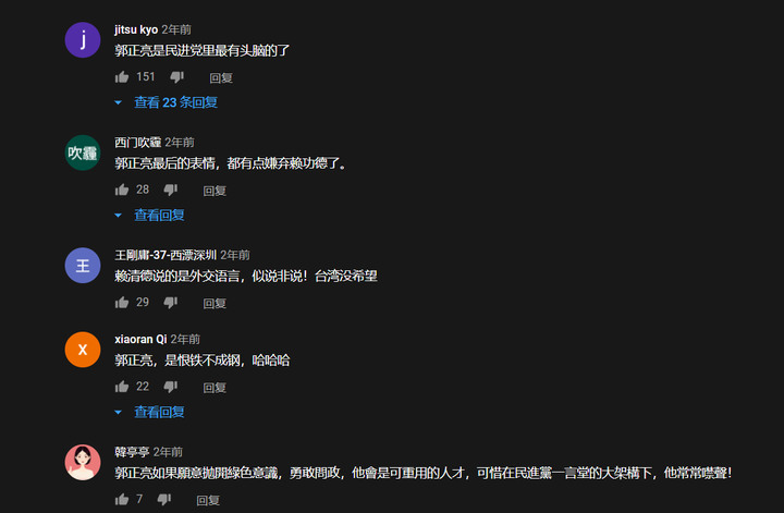 北漂彰化人 wrote:台灣的藍綠政論節目來賓都是那些固定面孔,說著支持者愛聽的話. 郭正亮是台獨派的其實没所謂,最重要是他節目上說話有質素對岸的人懂得欣賞,只是證明對岸的人思想比台灣綠綠開放得多了台灣綠綠一見到賴岳謙除了噴他親中,還能反駁他的理論嗎?