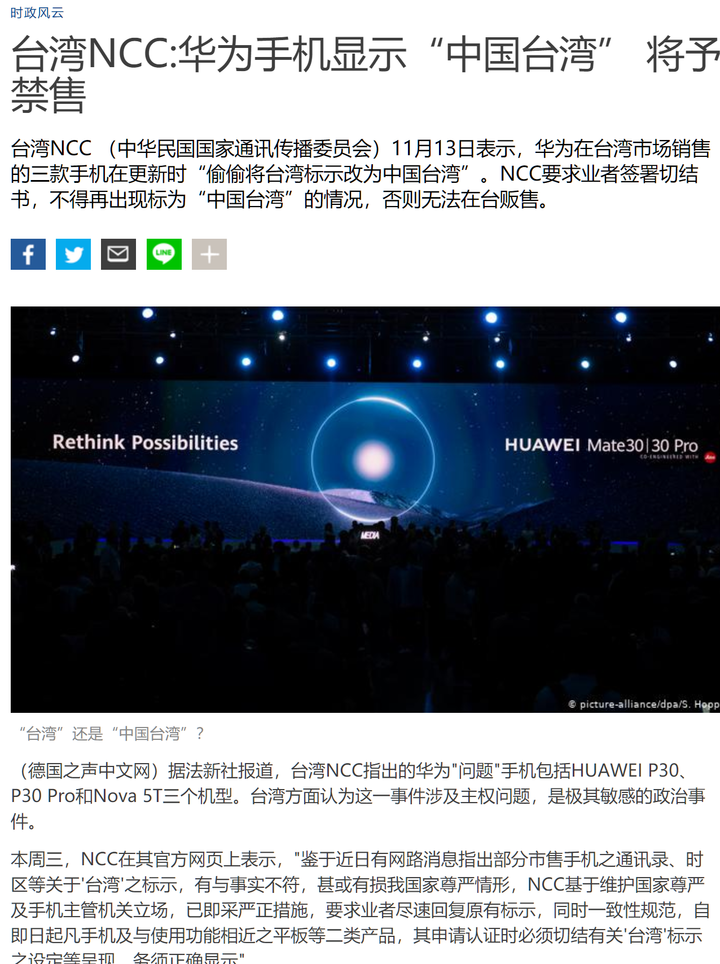 louadyin wrote:自己的土地上,打另一个政权叫侵略吗?不服气,你去跟全世界的航空公司抗议吗?他们写的都是中国台湾。 你這不是講廢話嗎?侵略者當然會說:那本來就是我的土地日本以前並沒說要侵略,日本也認為中國本來就是他的大東亞之一但是台灣從來就不屬中國,事實總要面對的中華人民共和國有統治台灣一天過嗎?華為想搞個中國台灣,結果還是要乖乖更正,證明一邊一國