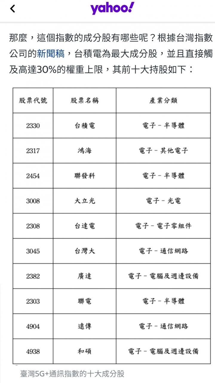 ETFollower wrote:不知道在哪裡看得到這...(恕刪) 剛剛在網路上找到了看起來 都算是國家隊一時之選沒錯質量應該還不錯https://tw.stock.yahoo.com/news/etf%E6%8A%95%E8%B3%87-%E5%9C%8B%E6%B3%B0%E5%8F%B0%E7%81%A35g-etf-00881-%E7%9A%84%E6%8A%95%E8%B3%87%E7%AD%96%E7%95%A5-123609570.html