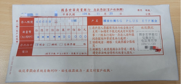 ayumi1018 wrote:請問這個是定期定額的(恕刪) 就主打5G 的 會配息 ETF聽說好像是12/10日上市之後 跟普通的ETF 股票一樣買賣定期定額 有沒這支 等上市後 再去問證券商看看吧看說明申購 手續費一張0.5% 大約=75元台幣費用不過上市後 買 正常來說 手續費 大約20元而已論申購價1萬5一張 算上手續費稅成本 大約 一張 上市後至少要漲0.1up 才沒虧錢不過話說 這支 上市後 不知道會不會有人買整張 拆賣零股?
