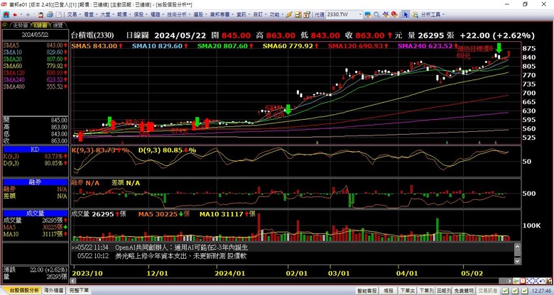 我認為 2024/05/23 台積電 2330 歷史高點877元 已到