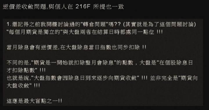 (與多數人所知"期貨向現貨收斂"相反,或許是"預期一定會填息權"所致)