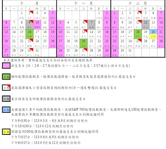 | 2月6日(二)~2月7日(三) | 台灣期交所休市 |