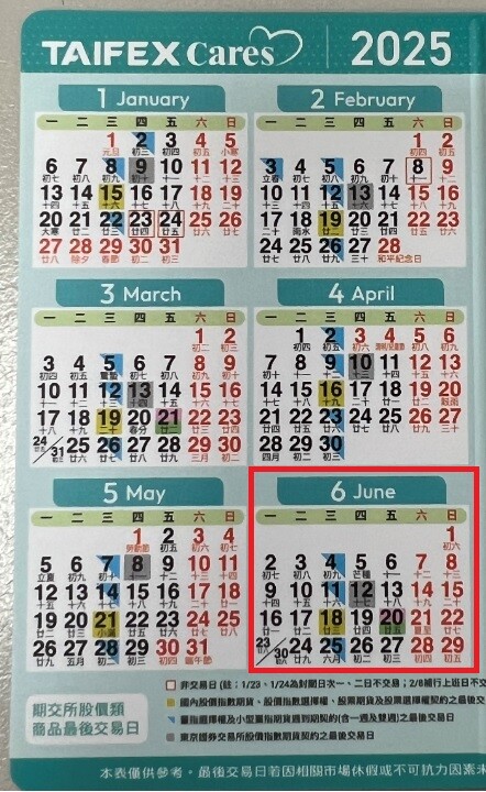 資料來源:台灣期貨交易所、SGX交易所、HKEX交易所、JPX交易所、TOCOM交易所
