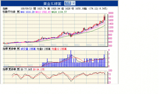 chiahsunyeh wrote:來張拉遠一點的圖任何...(恕刪) +1感謝提供這張長期趨勢圖,相對於日線圖,這張圖更清楚,更為宏觀多了...趨勢尚未改變之前,還是順勢而為吧...另外,感謝Windwaker,小弟受教了,這部份我們怎麼也無法有共識,只有彼此祝福囉,就讓事實與歷史的循環,來證明一切吧。