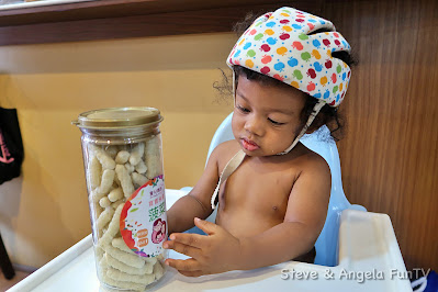 寶兒媽咪的寶寶米餅在一個恰到好處的大小,Tater拿在手裡剛剛好,而且長度讓他一次塞不進去嘴巴裡面,一定要他慢慢啃過,不怕小孩噎到,也讓Tater開始學習吃東西要慢慢吃!