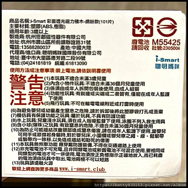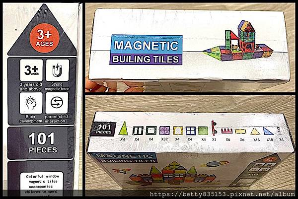 3歲以上小朋友就可以玩了唷!盒外標示著內含共有101配件(開啟後即可依照圖示一一核對品項與數量)