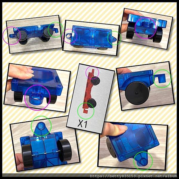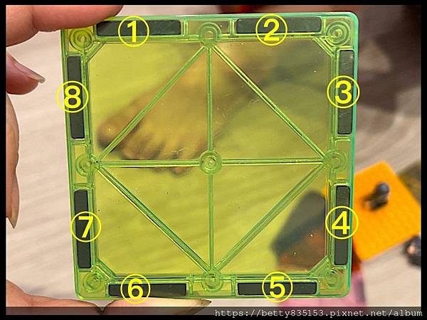 另外一種有洞的「磁力片」、在孩子遊戲中常會變成「出入口」,也是個不可獲缺的重要元素之一喔!