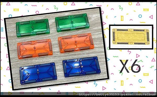整組玩具最多的「磁力片」,提供多達六種顏色,讓小朋友玩的時候能更佳盡興。