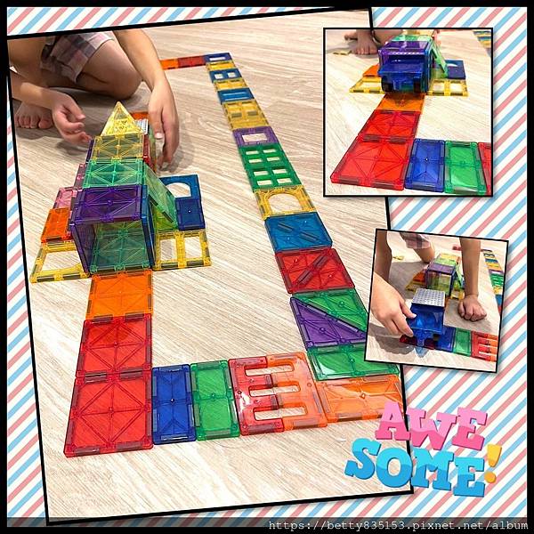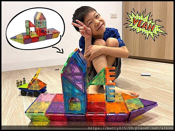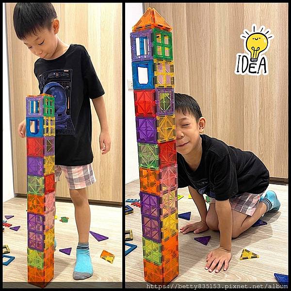 疊高遊戲,也是弟弟愛玩的玩法,由於磁力夠強,所以房子疊高時也比較穩固些喔!