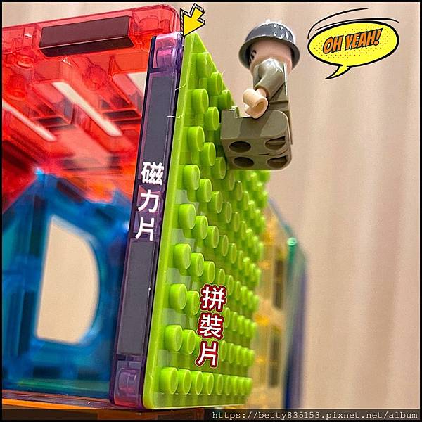 這個四方框框「磁力片」可以跟「積木拼裝片」相互結合一起玩喔!