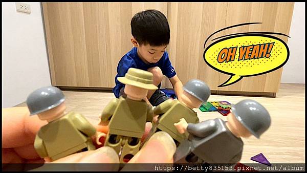不一會兒,他就把「戰車」(坦克)給組裝出來了耶!真棒!!!