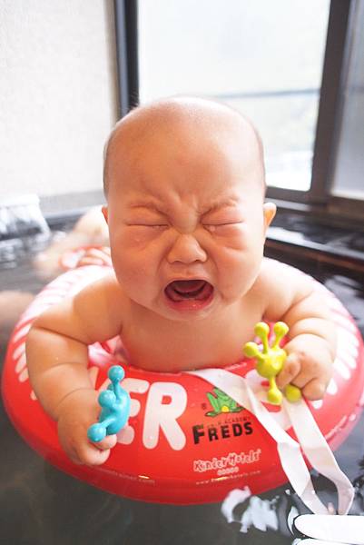 少晞對新玩具愛不釋手, 完全忘了舊愛飄飄樂, 結果飄浮玩具就一直被水沖走, 有種好落寞的 fu 啊~~~