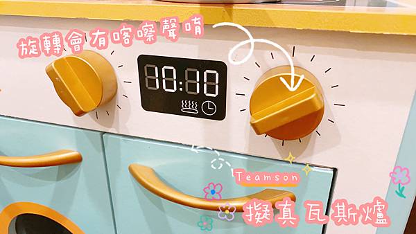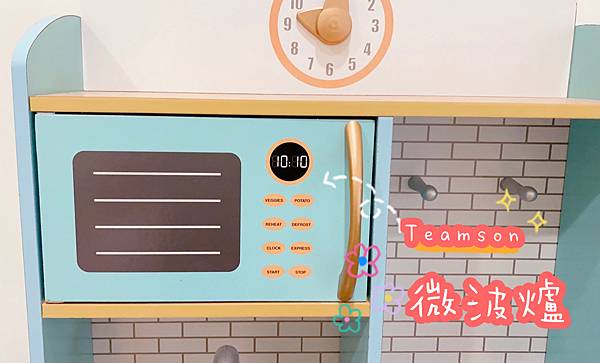 仿真微波爐和經典水槽設計,旋鈕轉動有喀喀聲,可模擬在廚房料理的情境