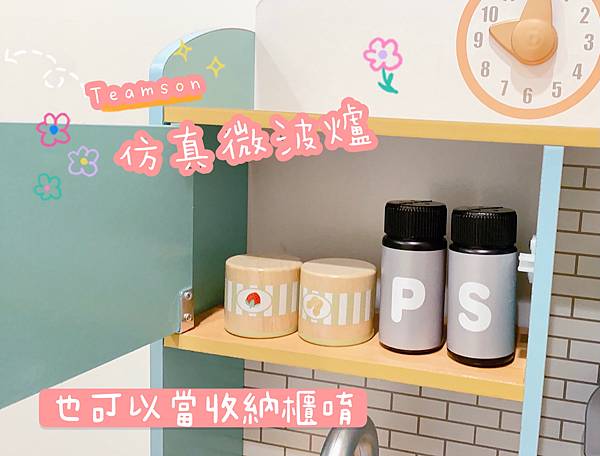 為扮家家酒遊戲增添新樂趣,櫥櫃門還可收納玩具配件,讓孩子從小培養收納物品的好習慣