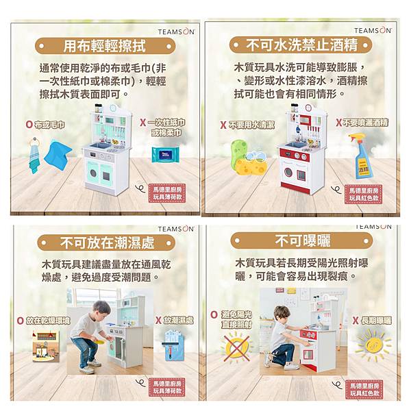 用布輕輕擦拭、不可水洗、禁止酒精、不可放在潮濕處、不可曝曬