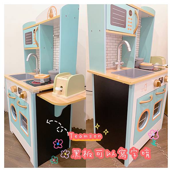 這真的超特別的~這款廚房玩具在左右兩側配置了小黑板