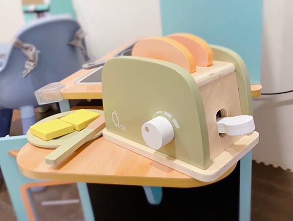 旁邊還有食物調理台,可以讓小朋友用來切菜、放烤麵包機、備料