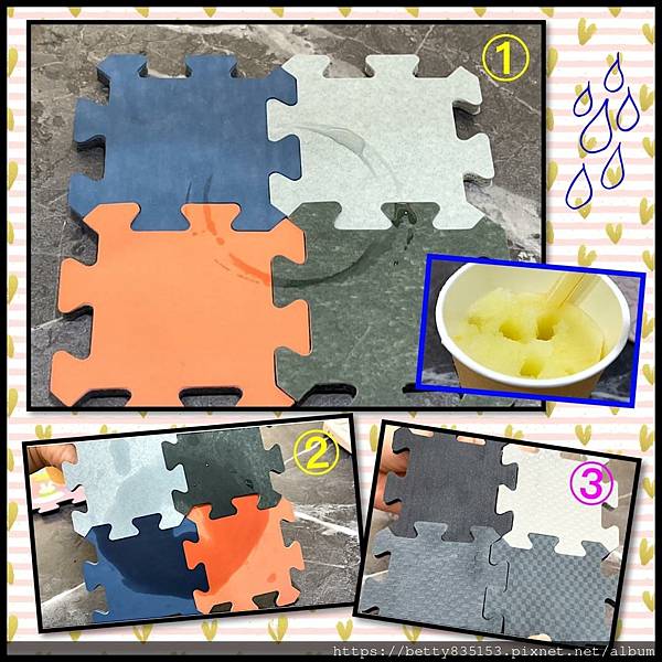 但是,突然我想到了孩子們平常玩的硅藻土拼圖,這些拼圖有吸水的功能。於是我決定把它們用在冰沙杯子下面,當杯子滲出水分時,硅藻土拼圖會幫忙吸收水分,保持桌子乾爽。這不僅是個聰明的點子,還可以成為一個有趣的實驗,觀察拼圖吸水的過程。