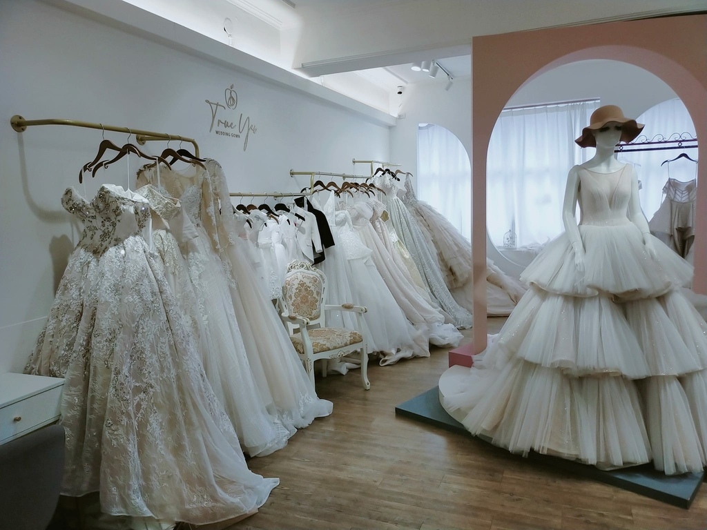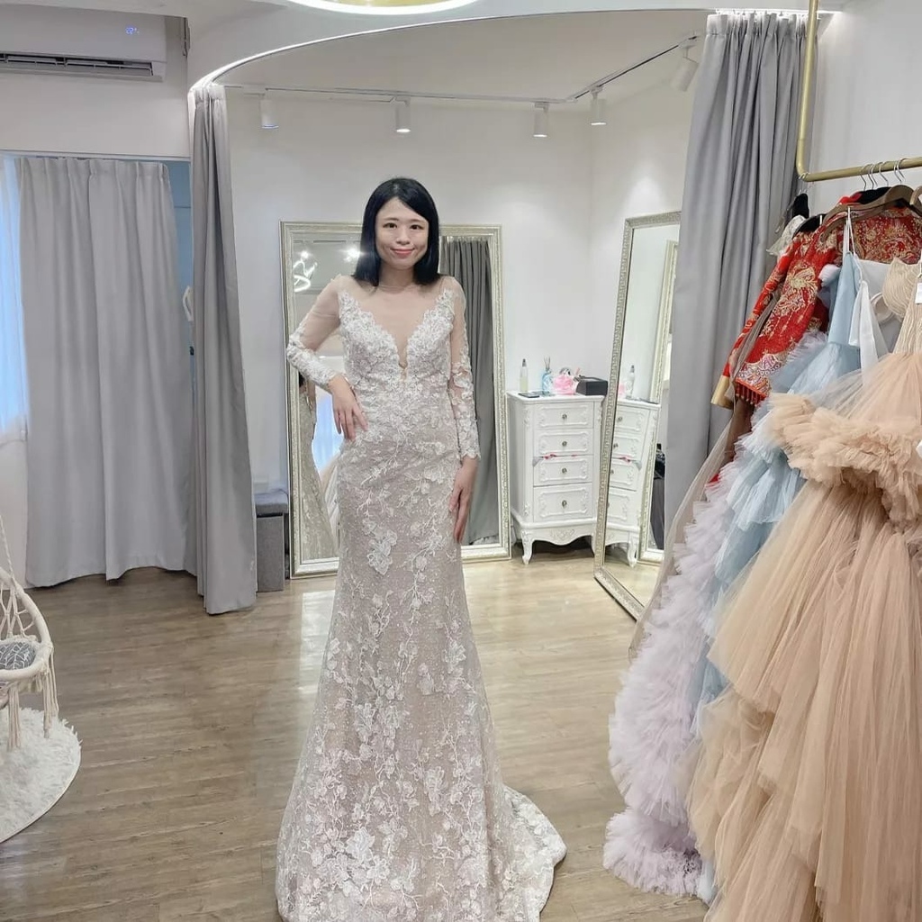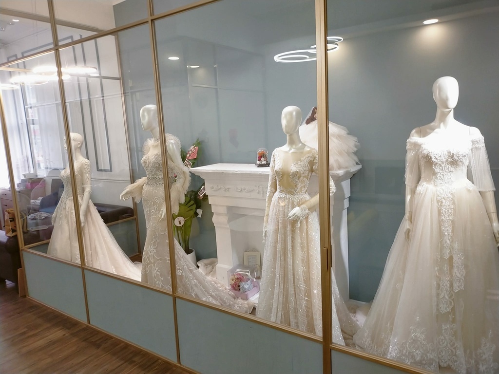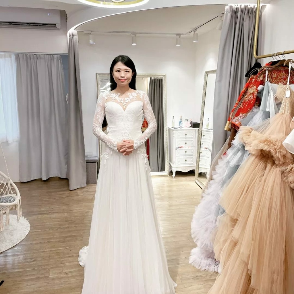 現在囍聚手工婚紗禮服工作室從市政府捷運站附近搬到華航南京東路三段上,我在IG上看到水藍色的手工禮服就感到非常心動,因為最近到了適婚年紀,想找看看適合自己的禮服,不試穿看看禮服怎會知道自己適合哪一款白紗禮服呢?