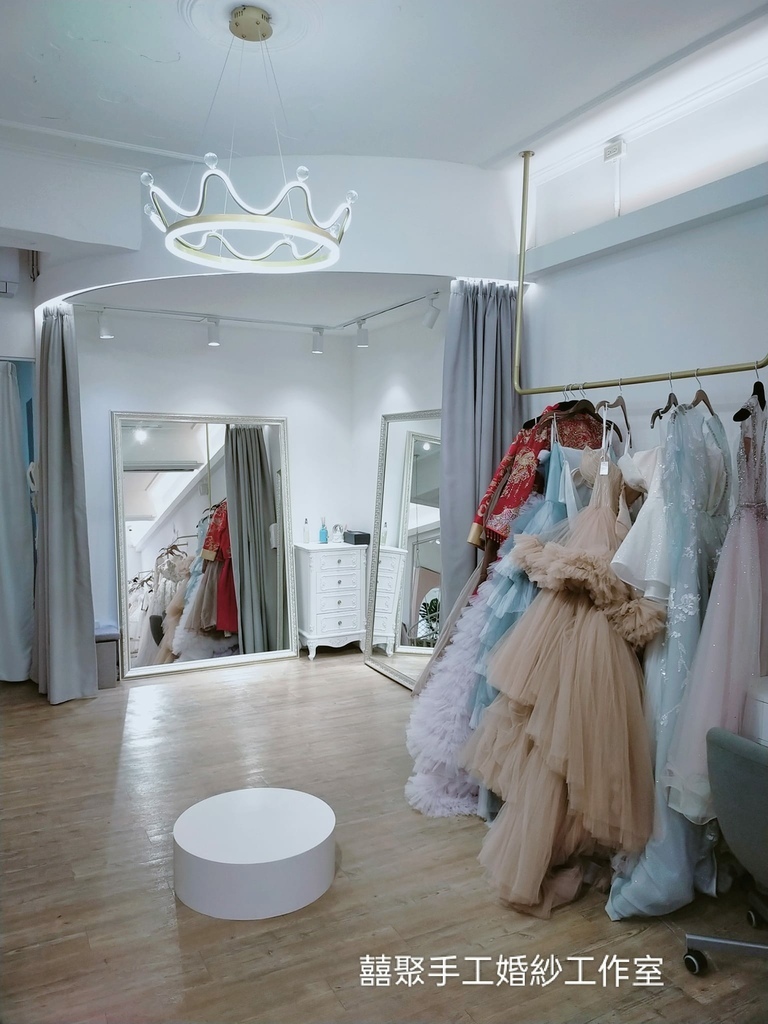 囍聚手工婚紗禮服工作室的二樓就是試衣間,眾多婚紗琳瑯滿目,也有中式的秀禾服及花童們的禮服,囍聚手工婚紗禮服工作室的用心與專業,會讓每個待嫁女人都可以夢想成真~~